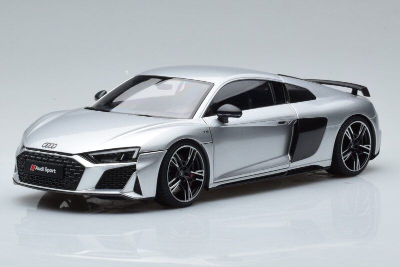 A 1:18 scale model measures approximately 25-28 cm (approximately 10-11 inches). The Audi R8 Performance Argent Kengfai 1:18 is perfect for display in a glass cabinet or on a shelf.