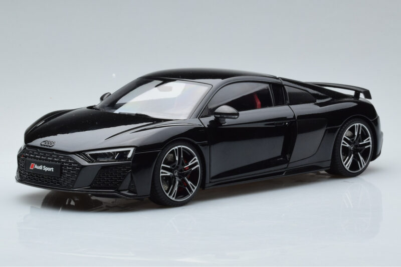A 1:18 scale model measures approximately 25-28 cm (approximately 10-11 inches). The Audi R8 Performance Noir Kengfai 1:18 is perfect for display in a glass cabinet or on a shelf.