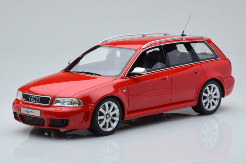 A 1:18 scale model measures approximately 25-28 cm (approximately 10-11 inches). The Audi RS4 B5 Avant Rouge Otto 1:18 is perfect for display in a glass cabinet or on a shelf.