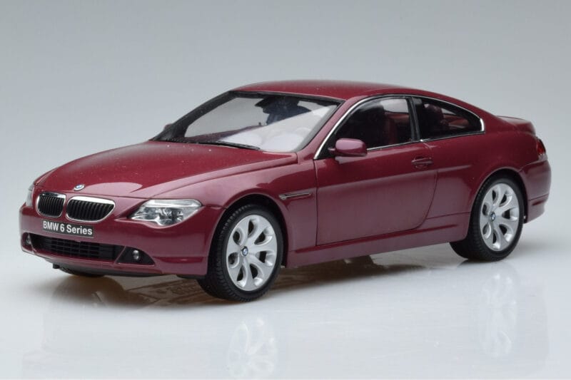 The BMW 645Ci E63 Rouge Foncé Kyosho 1:18 is crafted from Métal. Die-cast zinc alloy body with detailed plastic parts, rubber tires, and high-quality paint finish. Die-cast models are known for their weight, durability, and realistic feel.