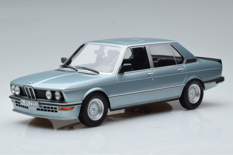 A 1:18 scale model measures approximately 25-28 cm (approximately 10-11 inches). The BMW M535i E12 Bleu Norev 1:18 is perfect for display in a glass cabinet or on a shelf.