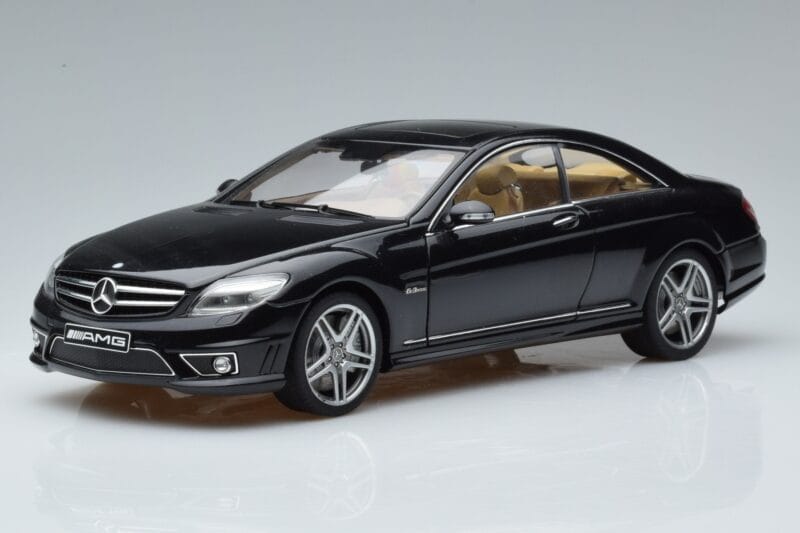 The Mercedes CL63 AMG C216 Noir AUTOart 1:18 is crafted from Métal. Die-cast zinc alloy body with detailed plastic parts, rubber tires, and high-quality paint finish. Die-cast models are known for their weight, durability, and realistic feel.