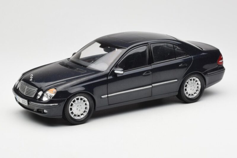 The Mercedes E-Class W211 Bleu Métallisé Kyosho 1:18 is crafted from Métal. Die-cast zinc alloy body with detailed plastic parts, rubber tires, and high-quality paint finish. Die-cast models are known for their weight, durability, and realistic feel.