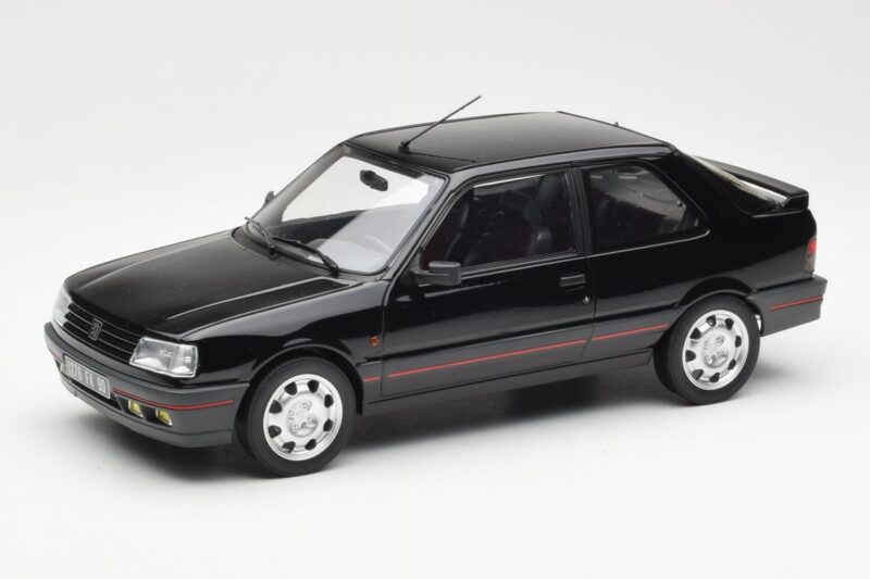 A 1:18 scale model measures approximately 25-28 cm (approximately 10-11 inches). The Peugeot 309 GTi Noir Norev 1:18 is perfect for display in a glass cabinet or on a shelf.