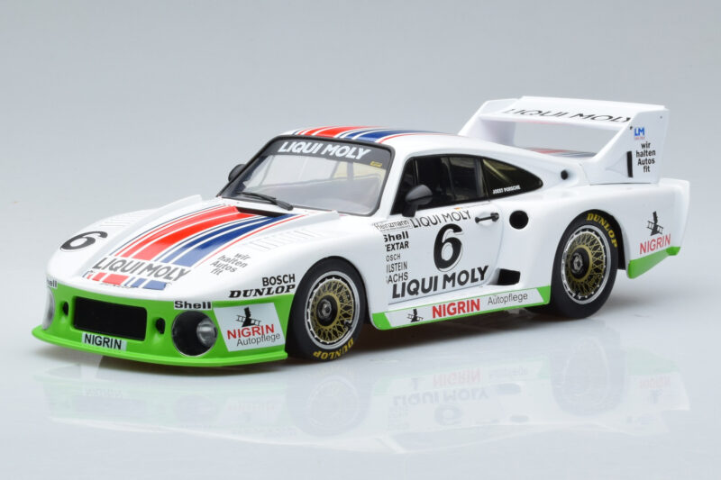 The Porsche 935J #6 Liqui Moly Spa-Francorchamps DRM 1980 MCG 1:18 is crafted from Métal. Die-cast zinc alloy body with detailed plastic parts, rubber tires, and high-quality paint finish. Die-cast models are known for their weight, durability, and realistic feel.